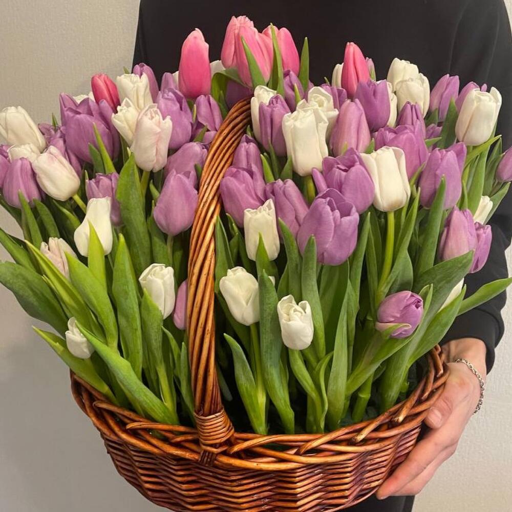 Корзина с тюльпанами