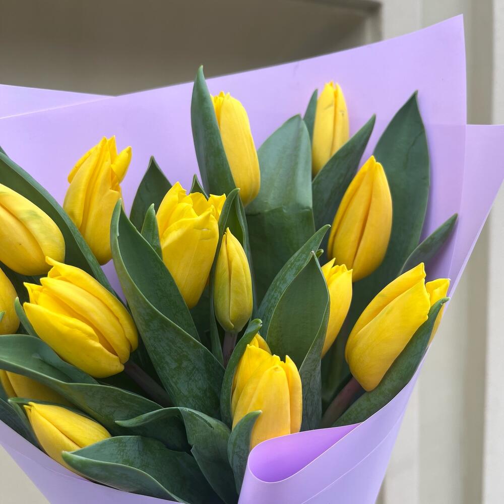 Тюльпан желтый – 15 шт.Упаковка корейская пленка – 1 шт.