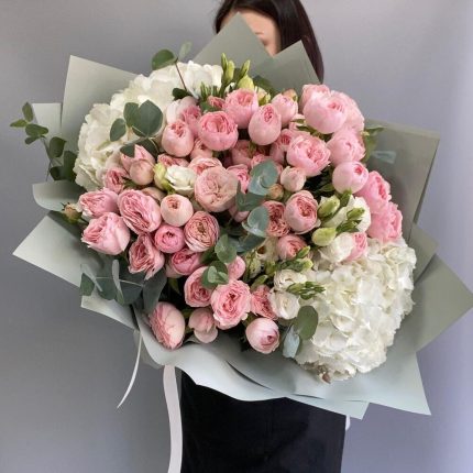 Роскошный букет с пионовидными розами и ранункулюсами «Аромат весны»