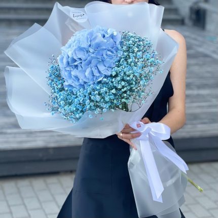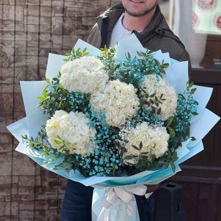Букет с гортензии и гипсофилы